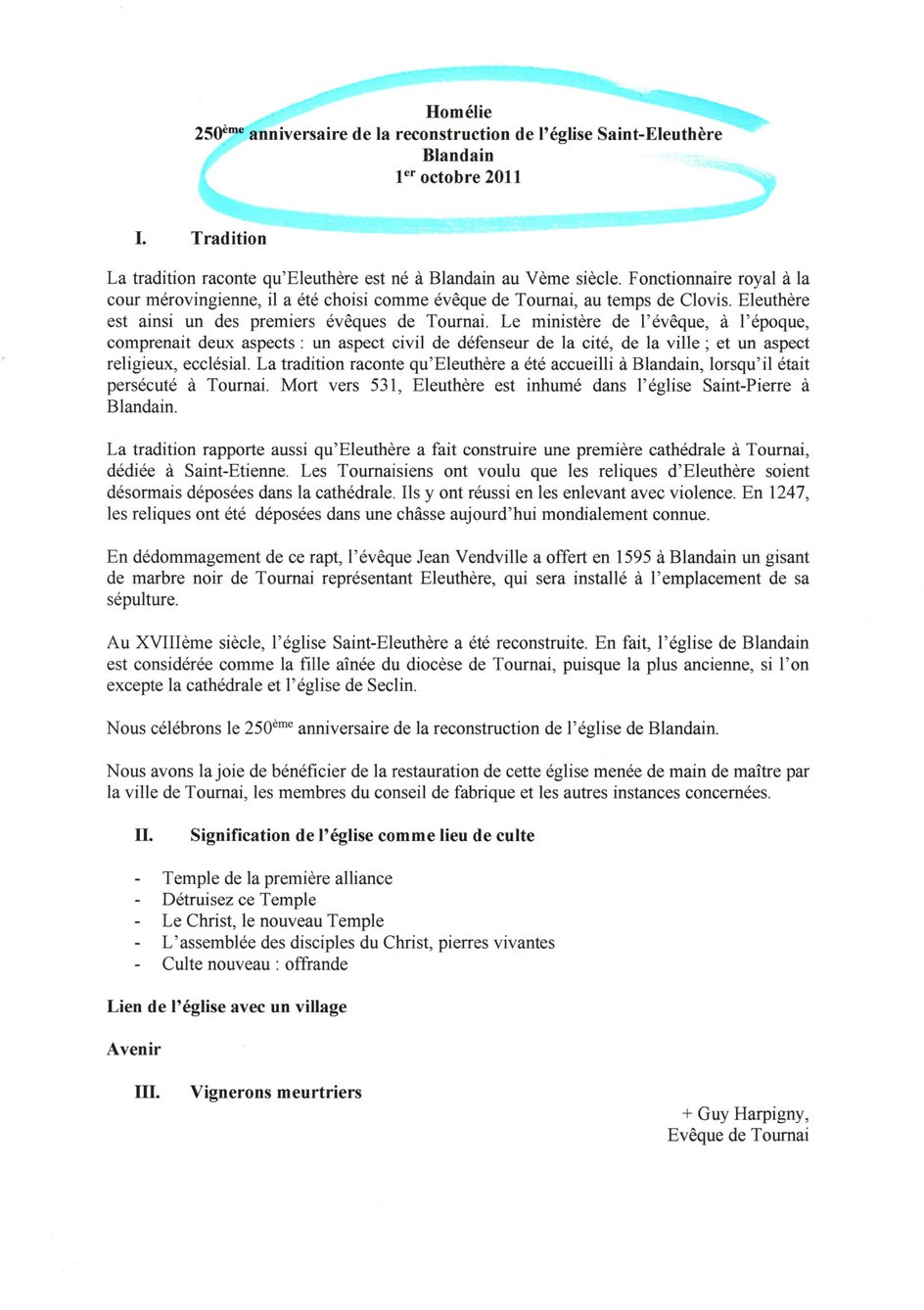 Compte-rendu du Jubilé des 250 ans de la reconstruction de l’église de Blandain (1760 – 2010).
